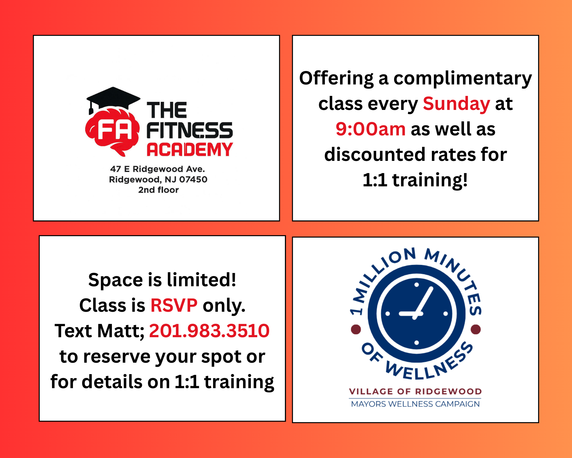 Space is limited! Class is RSVP only. Text Matt; 201-983-3510 to reserve your spot!